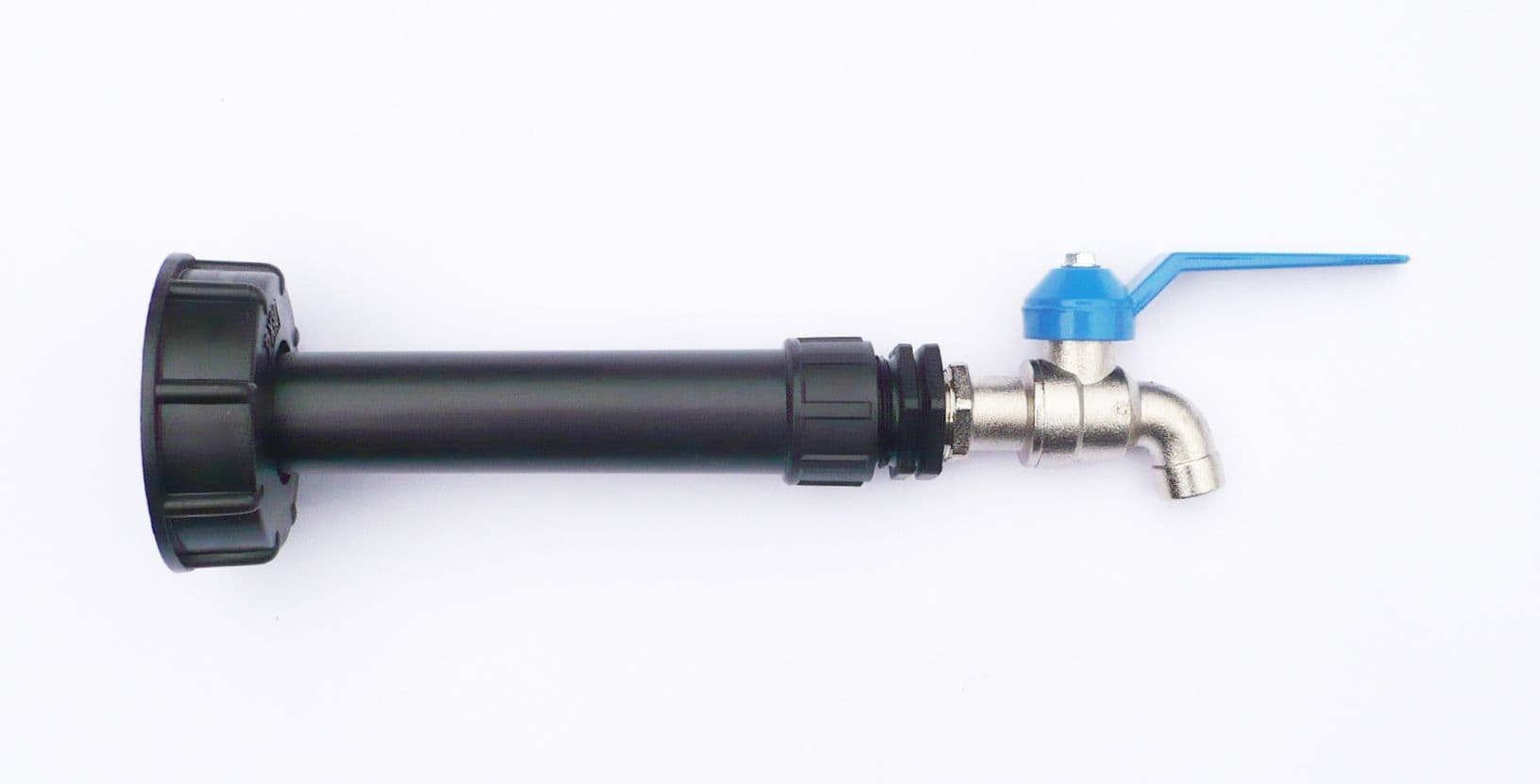 The filter also gives the added advantage of increasing the distance from the IBC connection to the final Outlet by about 6". Usefull in tight areas or for filling cans and buckets.